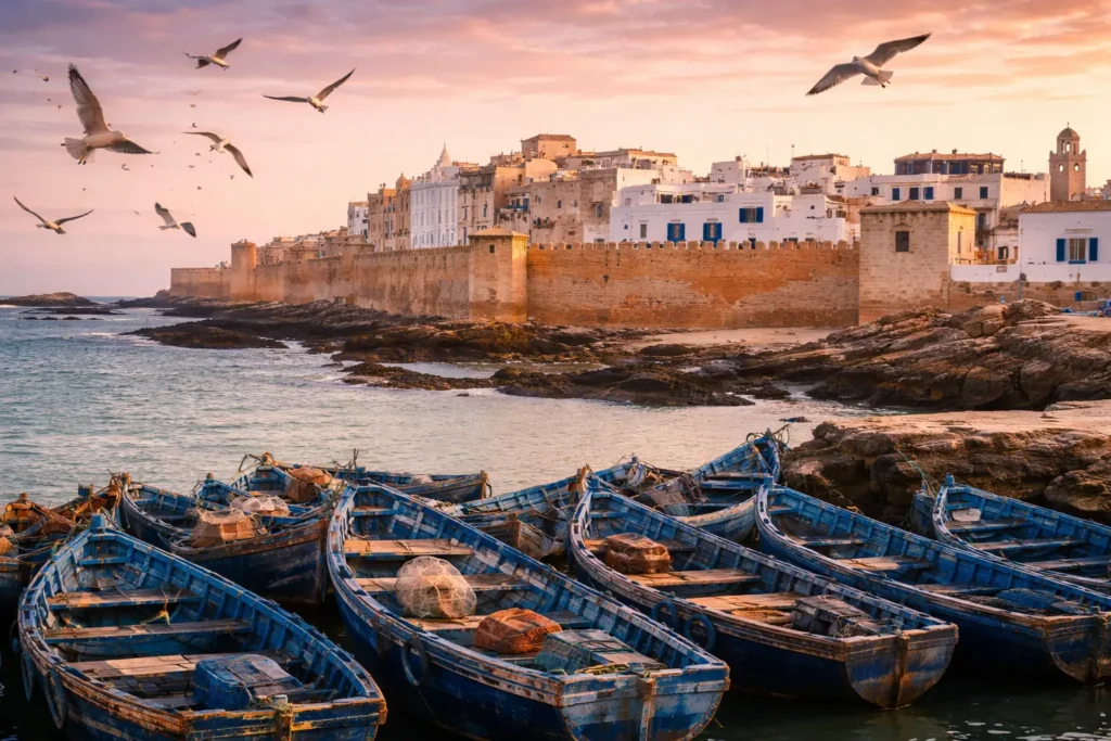 Morocco’s Atlantic coast offers a different kind of road trip. From Casablanca to Essaouira, the drive combines ocean views with charming fishing towns. Travelers in Morocco can enjoy fresh seafood, coastal breezes, and historic medinas. Further south, Agadir and Sidi Ifni highlight Morocco’s long beaches and relaxed atmosphere, perfect for unwinding after hours on the road.